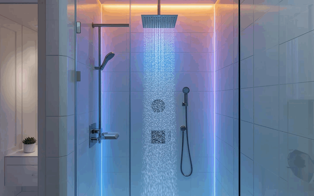LED lighting that changes colors based on water temperature adds both safety and ambiance. Bluetooth speakers stream your favorite music during shower time for that complete spa experience.