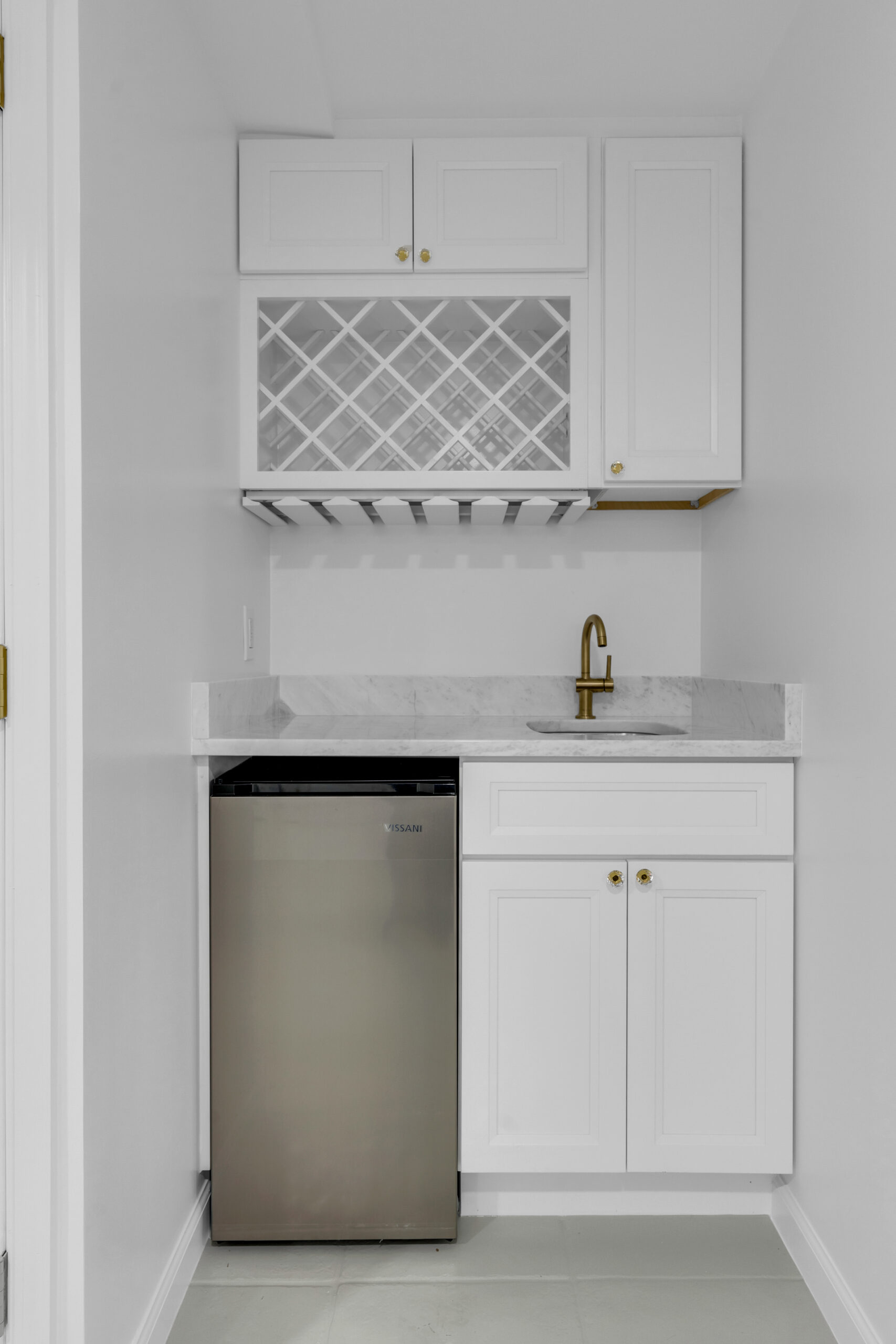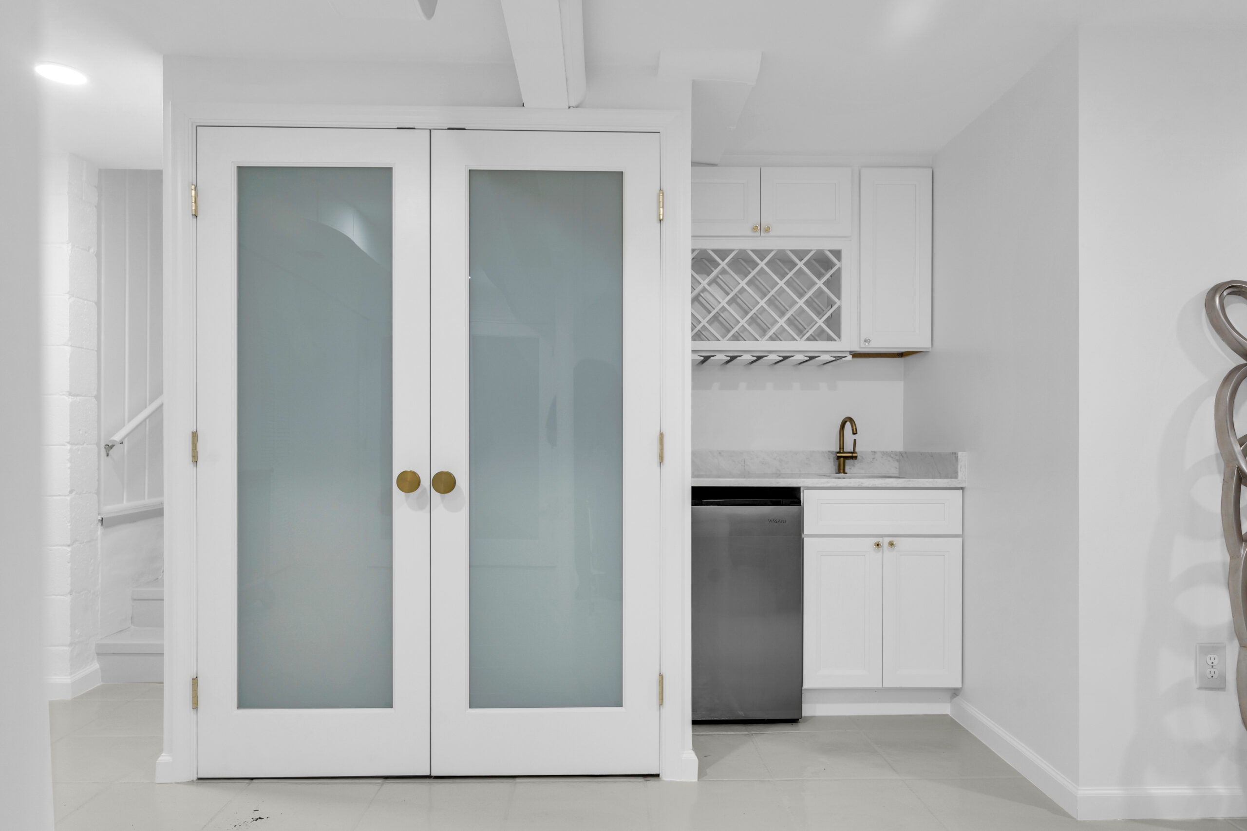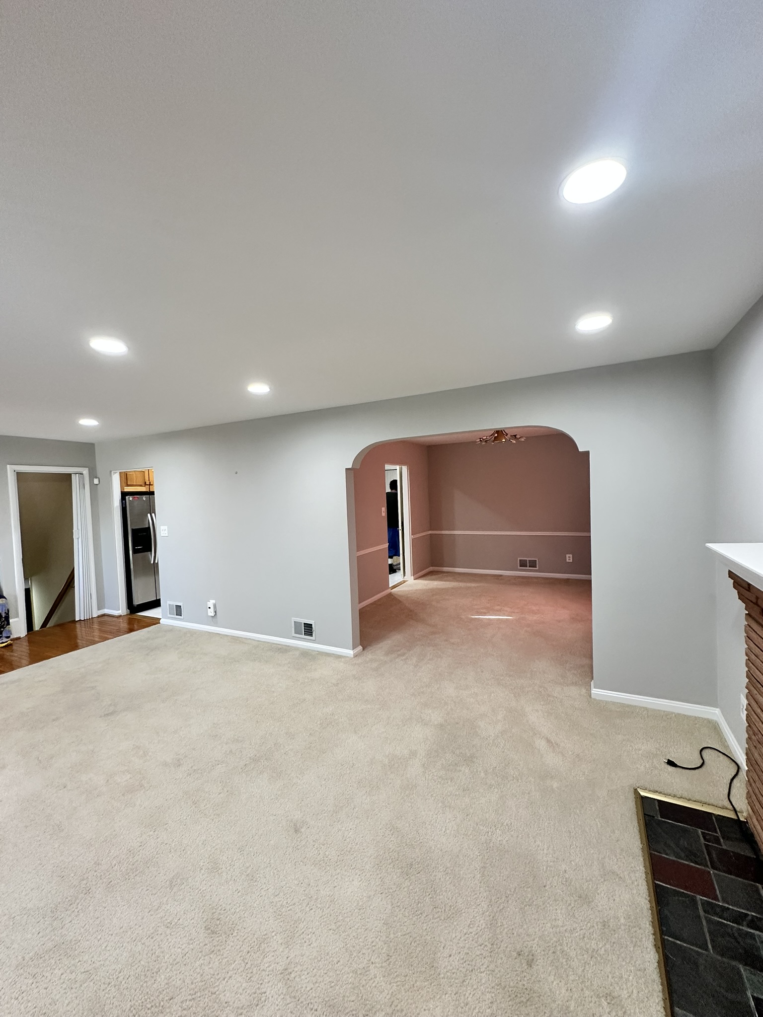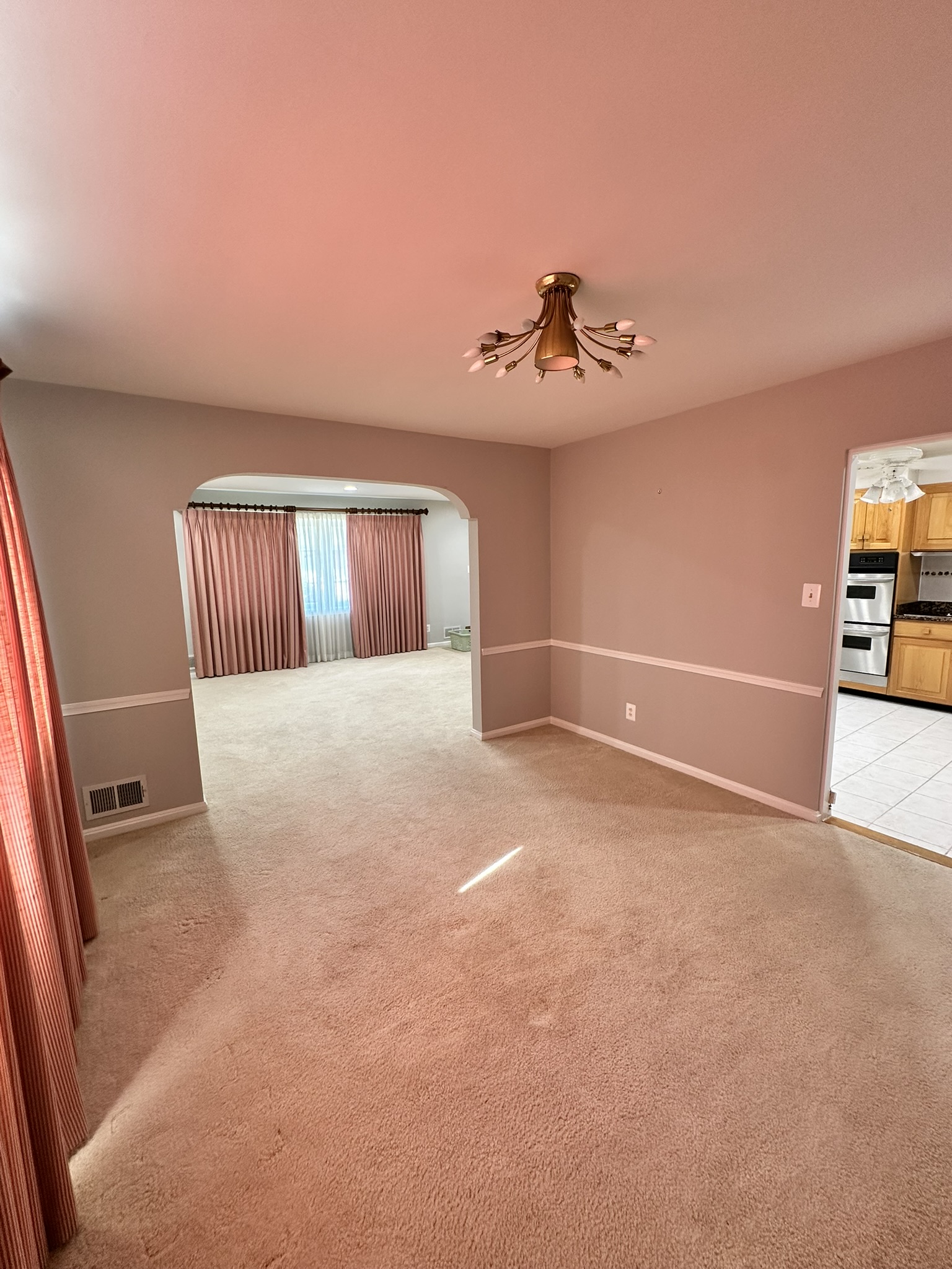 Luxury living took center stage in this stunning Hyattsville home remodeling project featuring kitchen and bathroom renovations. In the kitchen, sleek white shaker cabinets replaced dated oak, paired with elegant gold hardware and expansive white countertops. A crystal chandelier adds unexpected glamour overhead while warm hardwood floors ground the space beautifully. Down the hall, the bathroom mirrors this sophisticated aesthetic with large-format marble, a freestanding soaking tub, and a custom vanity. Gold fixtures and crystal lighting carry the cohesive design throughout. From cooking to relaxing, every space now balances elegant style with everyday function.